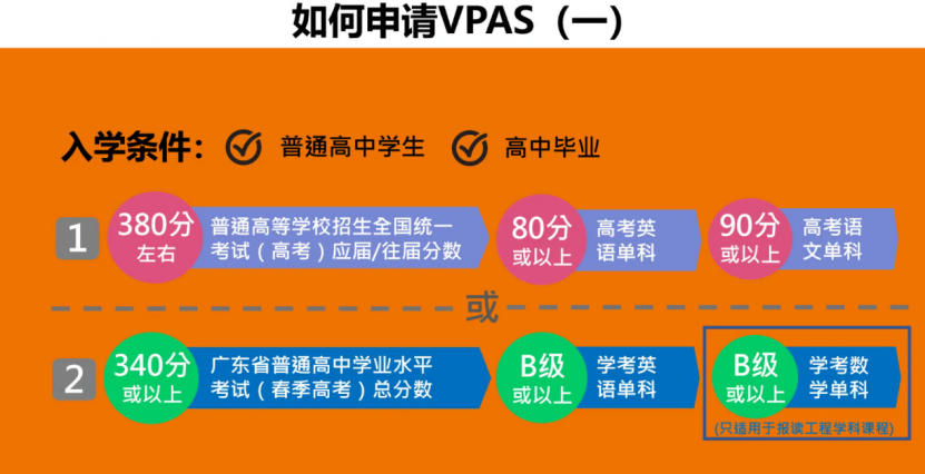 留港计划的条件(其中任何一个达到都可申请VPAS):1、必须参加高考,总分380分,3个80分;