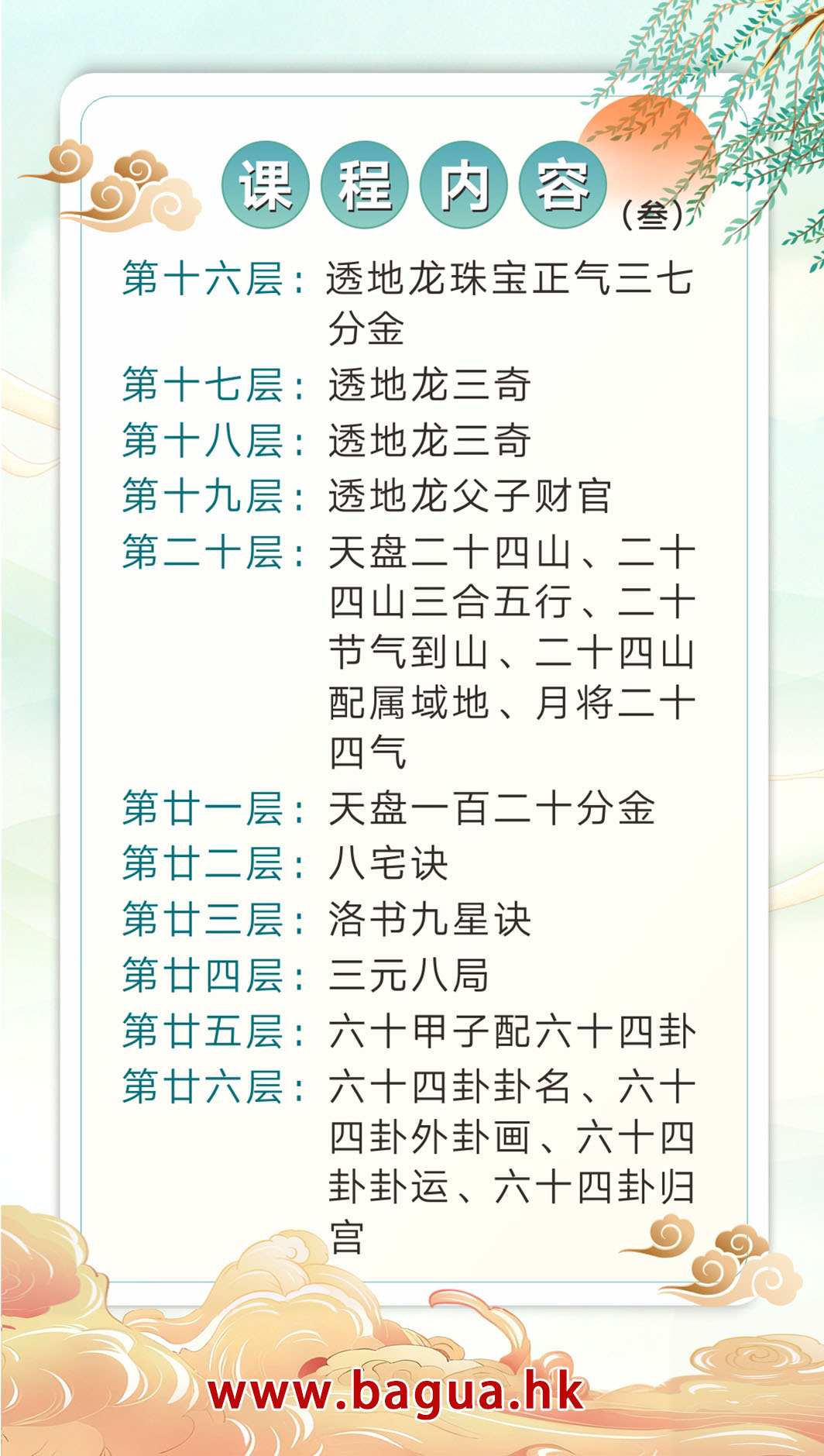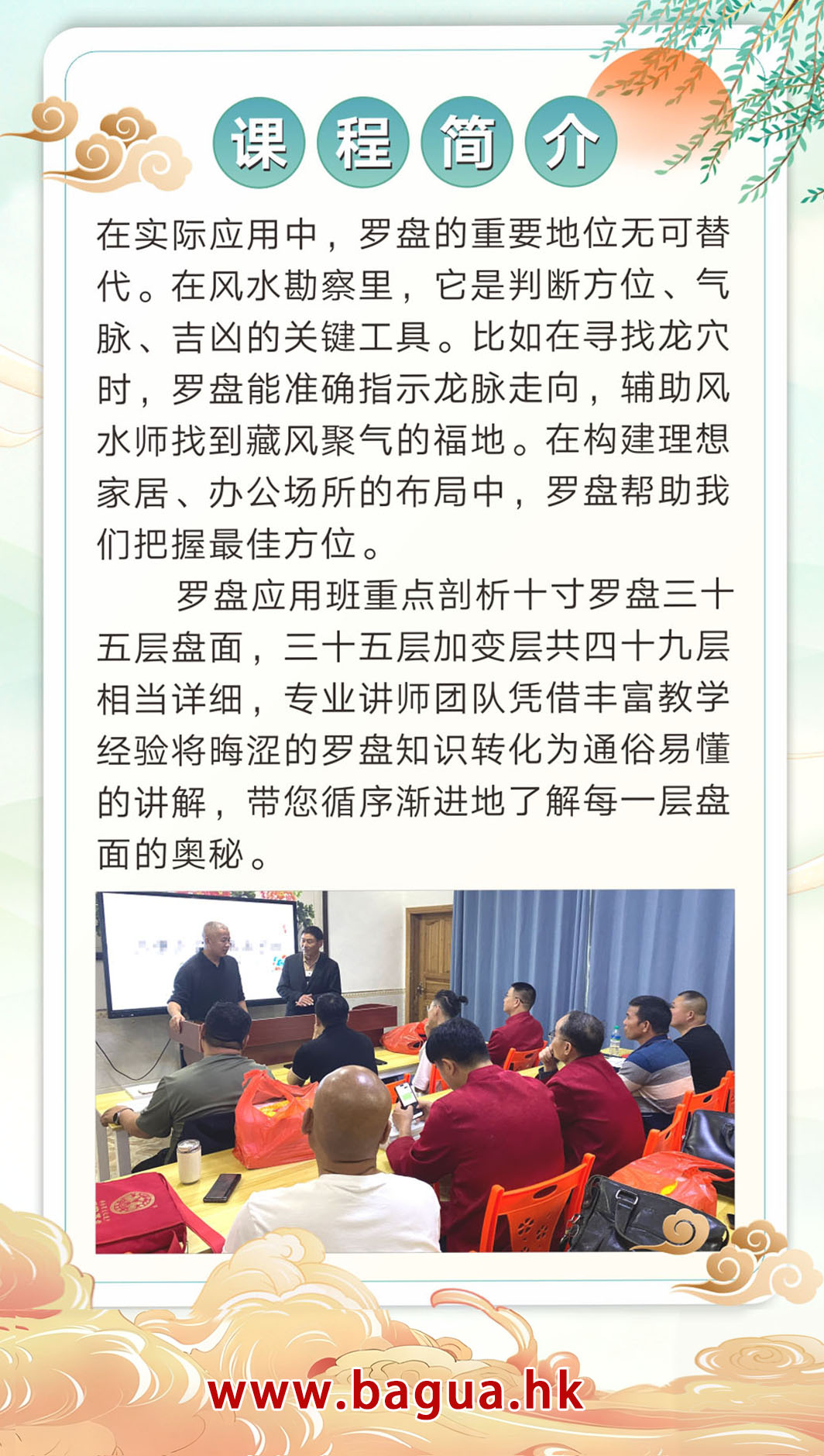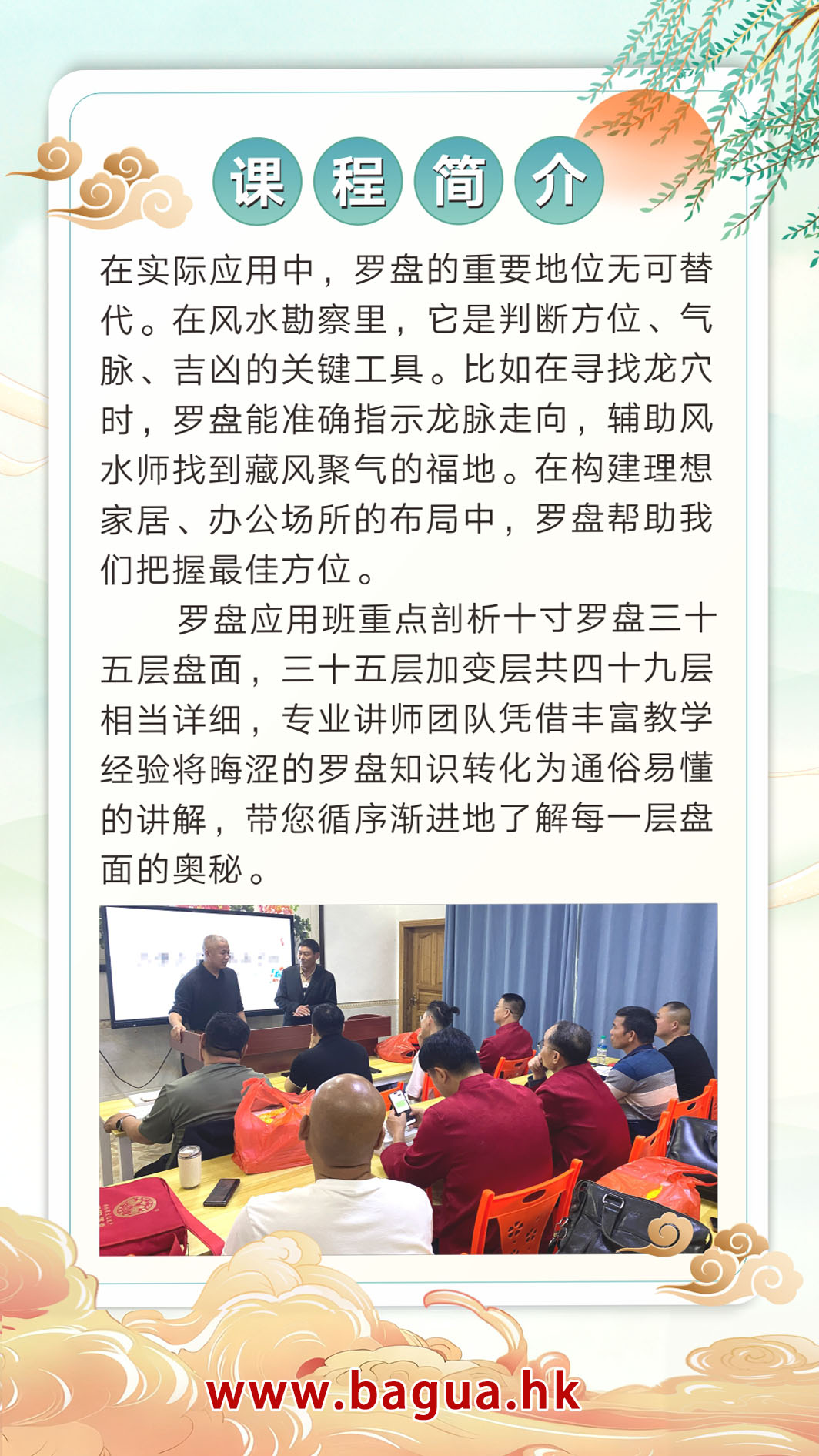 罗盘应用班重点剖析十寸罗盘三十五层盘面,三十五层加变层共四十九层相当详细,专业讲师团队凭借丰富教学经验将晦涩的罗盘知识转化为通俗易懂的讲解,带您循序渐进地了解每一层盘面的奥秘。